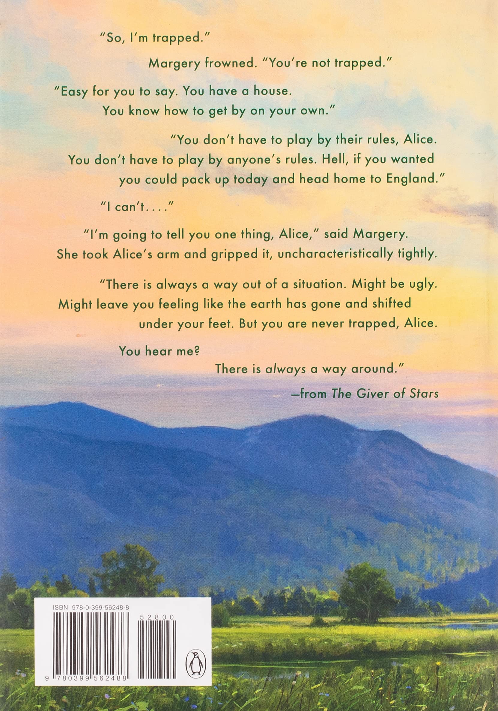 Alice Wright marries handsome American Bennett Van Cleve hoping to escape her stifling life in England. The Giver of Stars was inspired by a real group of librarians.